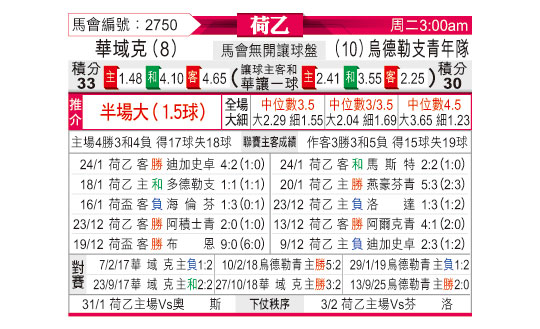 [荷乙] 瓦尔韦克vs乌德勒支青年队
