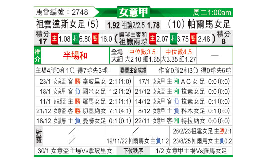 [意女甲] 尤文图斯女足vs帕尔马女足