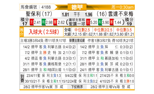 [德甲] 圣保利vs云达不莱梅