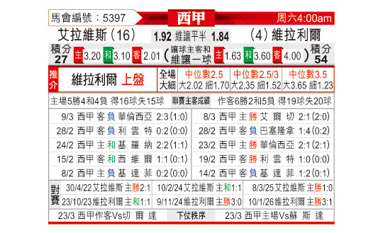 [西甲] 阿拉维斯vs比利亚雷亚尔