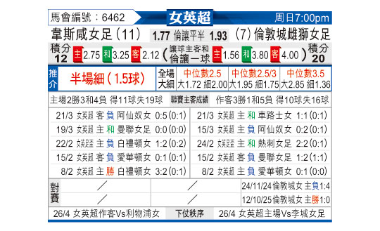 [英女超] 西汉姆联女足vs伦敦城雌狮女足